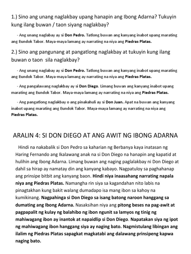 Aralin 5 Naglakbay si Don Juan 2. Naglakbay siya ng tatlong buwan sa kamalasan namatay ang kanyang kabayo at tuloy siyang lumakad. Dahil pagod na pagod siya huminga siya sa ilalim ng.